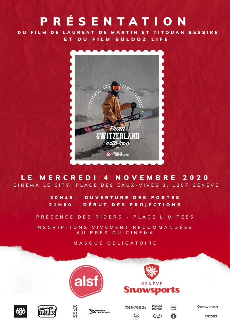 Ce 4 novembre 2020, en collaboration avec Cinéma le City, l’ALSF vous présente la Movie Night (Place des Eaux-Vives 3, 1207 Genève) ! À l’affiche, from Switzerland with love et Gore-Flex